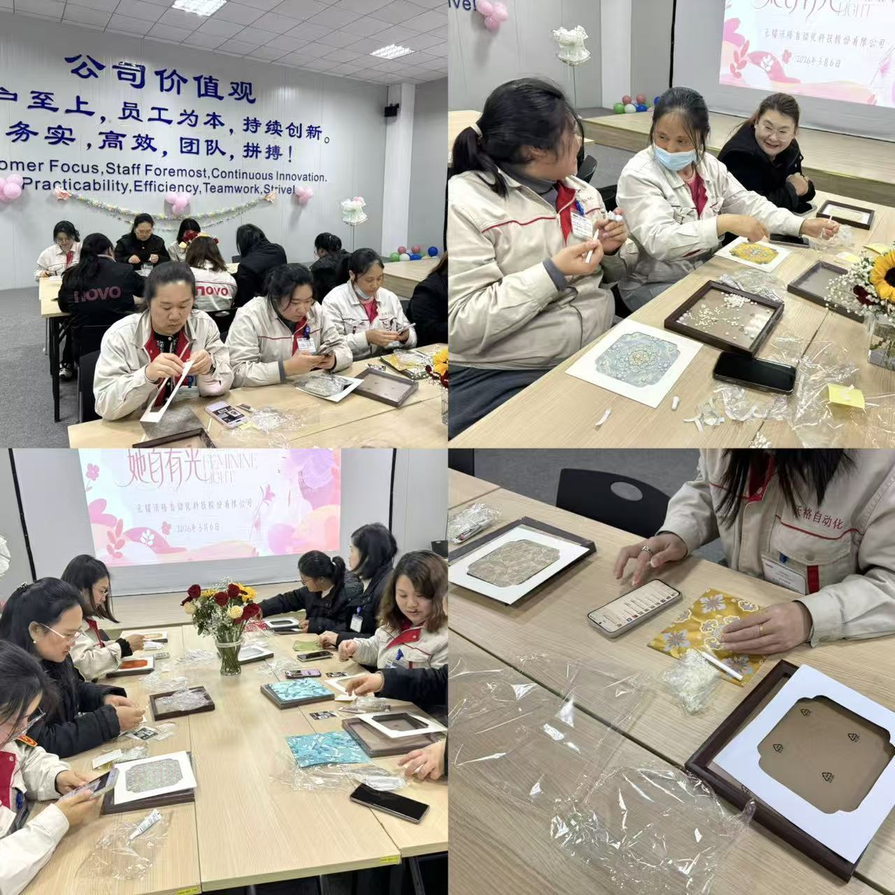 公司精心组织宋锦手作体验活动,带领女员工们走近非遗文化,在指尖匠心之中感受传统美学的独特魅力。大家暂时放下忙碌工作,化身巧手匠人,一粘一贴,静心创作,既舒缓了身心、释放了压力,也亲手制作出独一无二的节日纪念品。在沉浸式的非遗体验里,大家尽享创作之乐,定格属于自己的温柔与美好。
